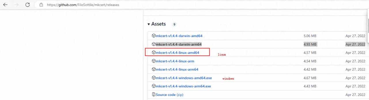 wget -O mkcert https://github.com/FiloSottile/mkcert/releases/download/v1.4.4/mkcert-v1.4.4-linux-amd64